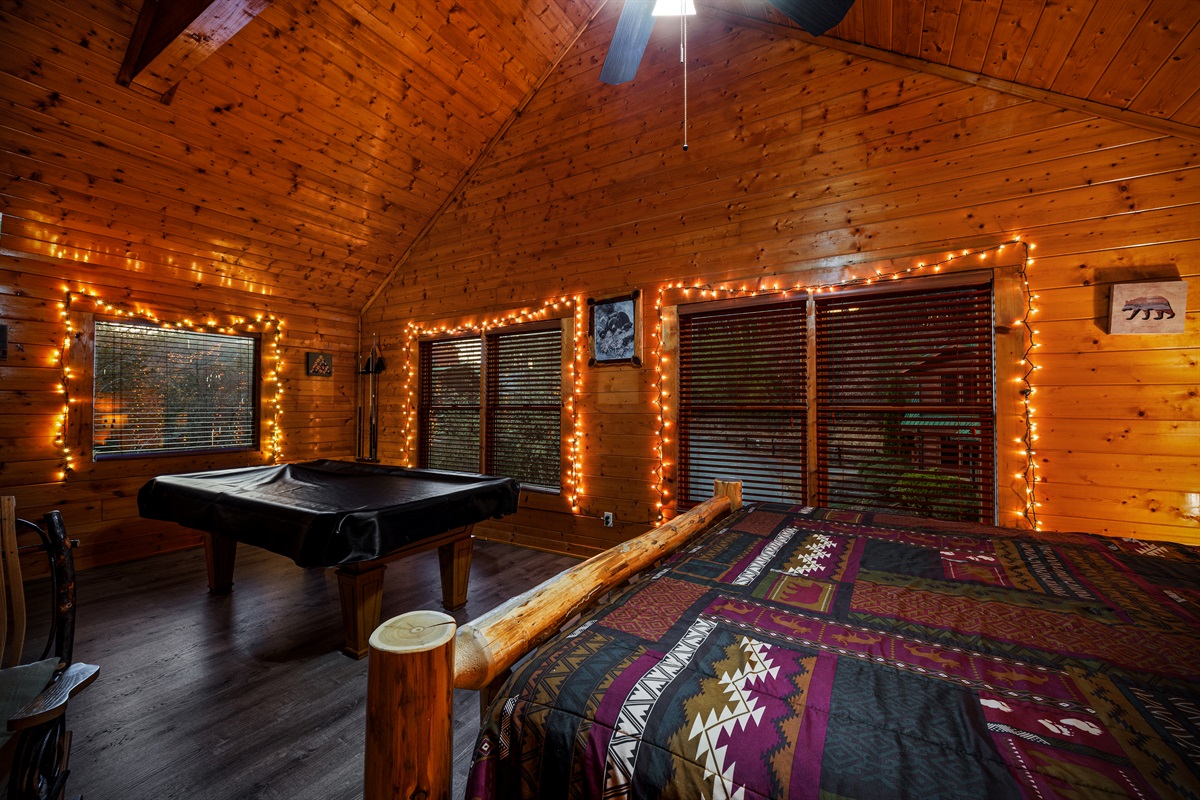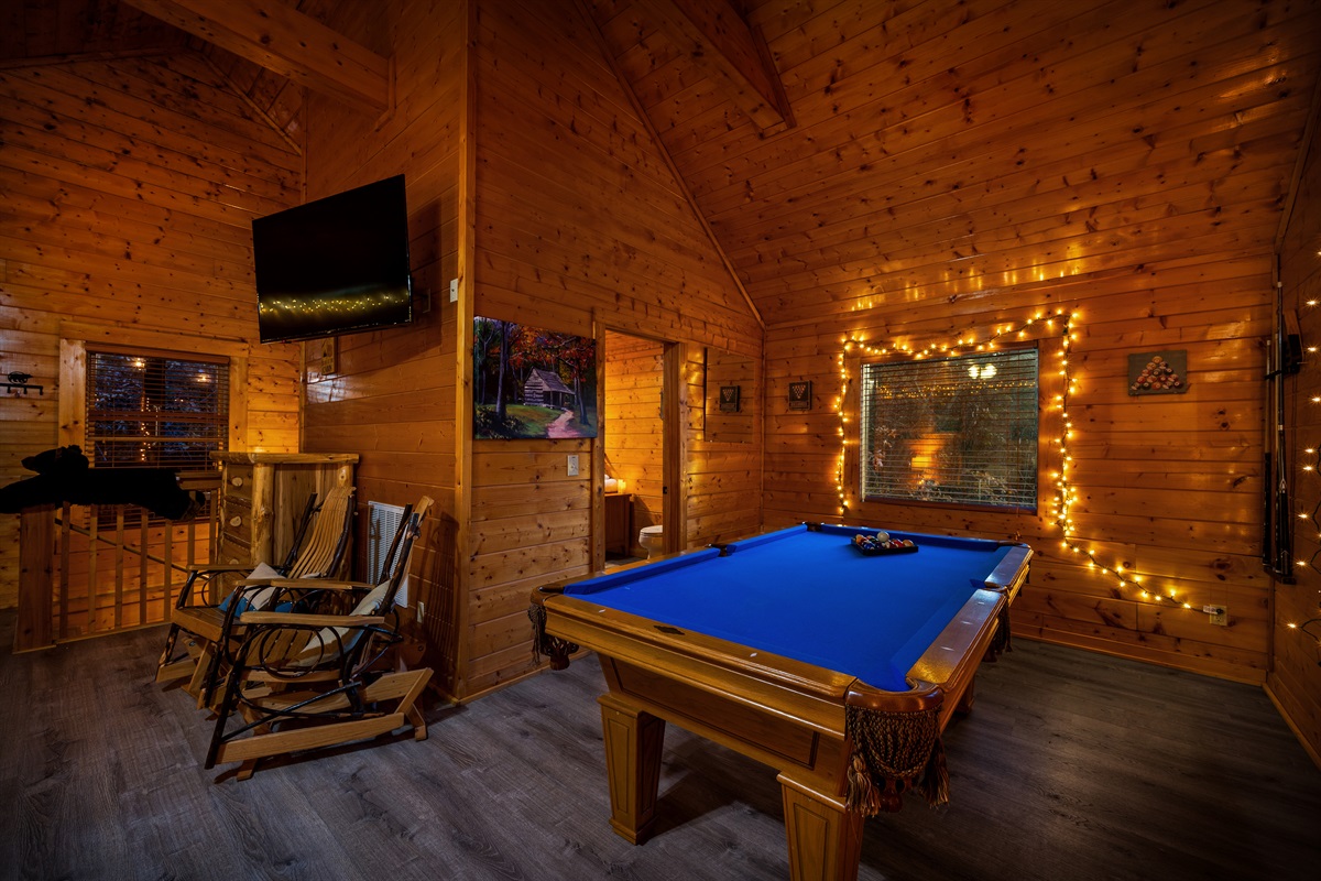 Enjoy the warmth of the indoor electric fireplace, unwind in the private hot tub on the upper deck, or challenge each other to a round of pool or classic arcade games. The fully equipped kitchen makes meals easy, and there's even a charcoal grill outside for a laid-back cookout (just bring charcoal!).