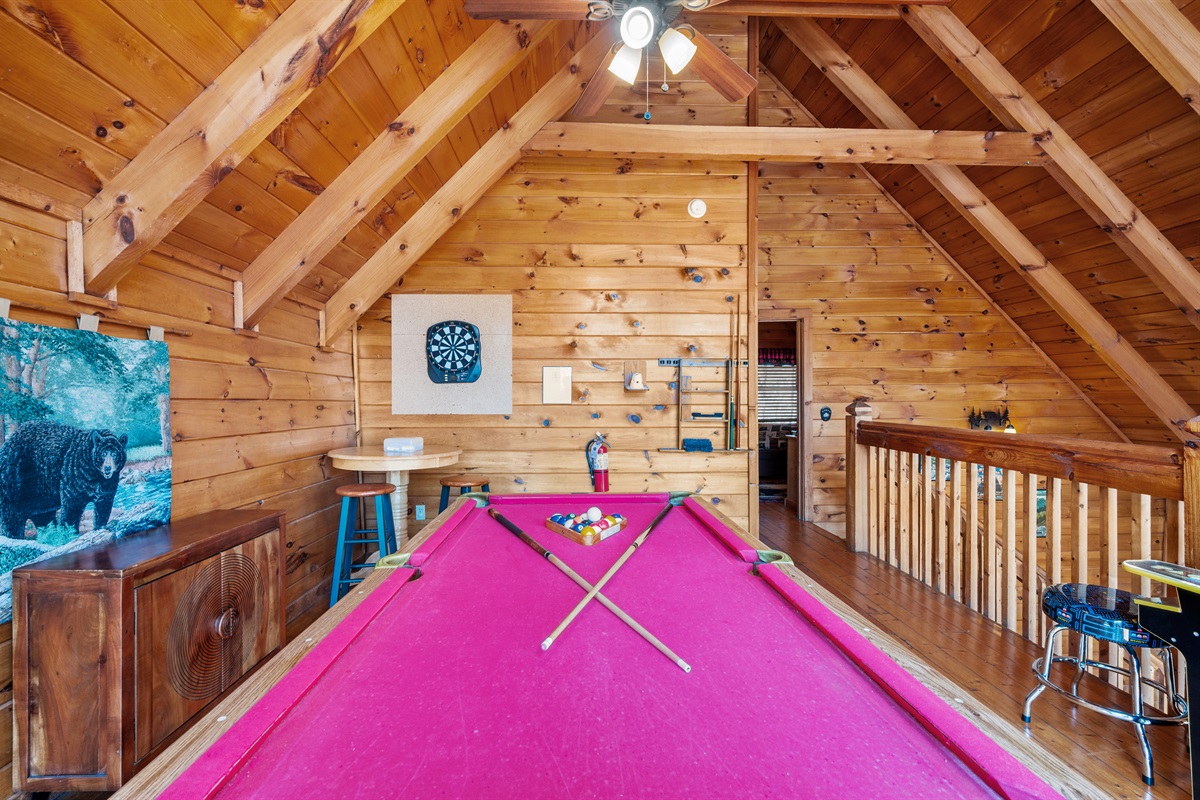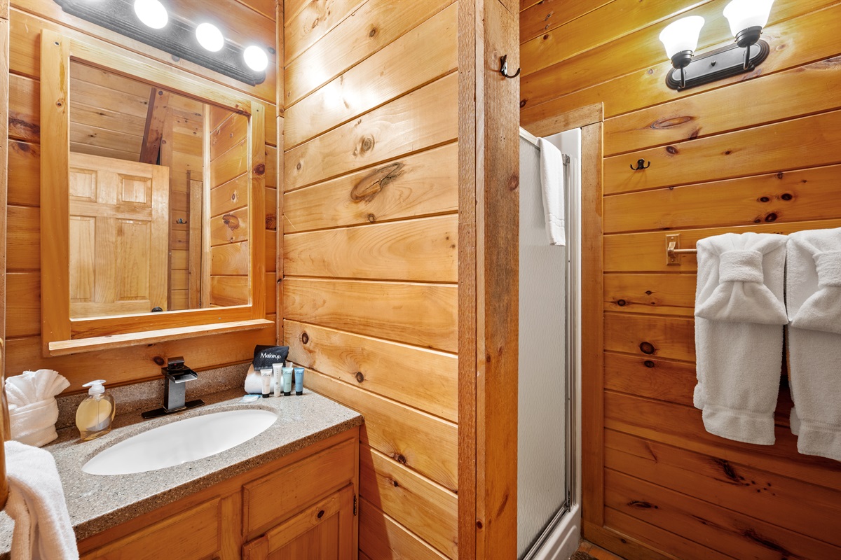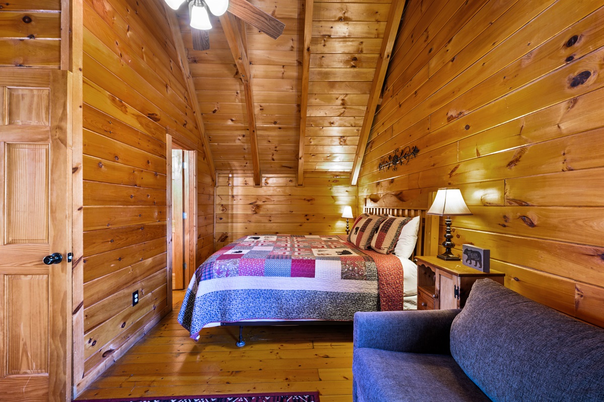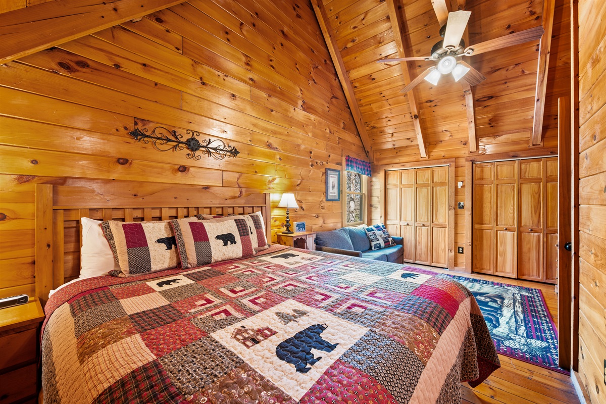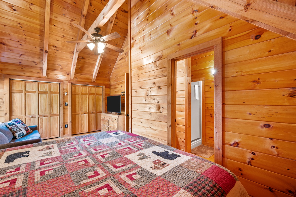 – 1 King bed (upstairs level)