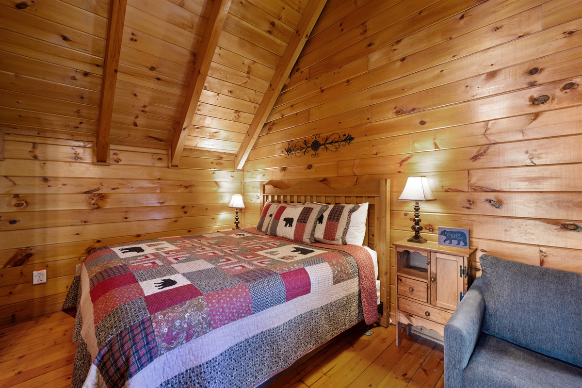 – 1 Queen bed (main level)