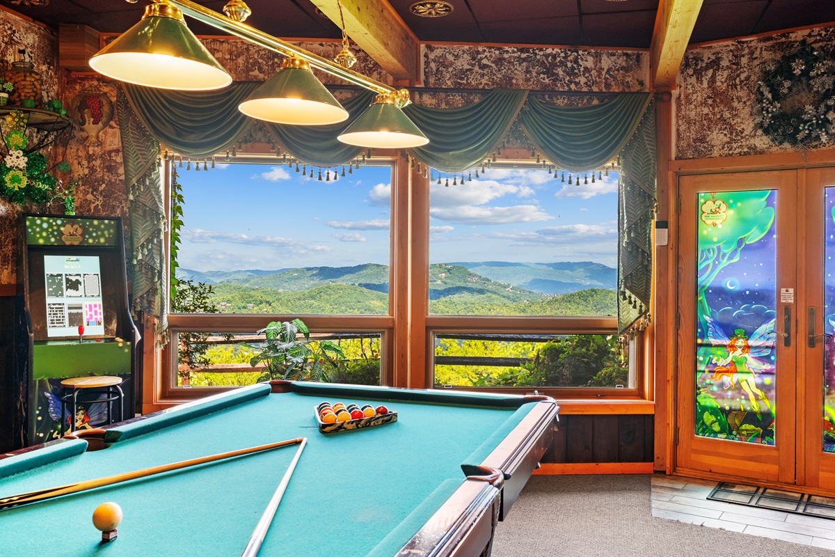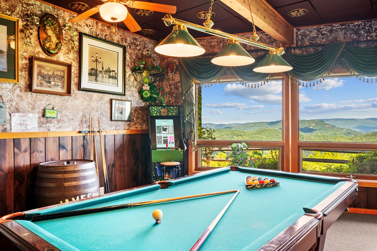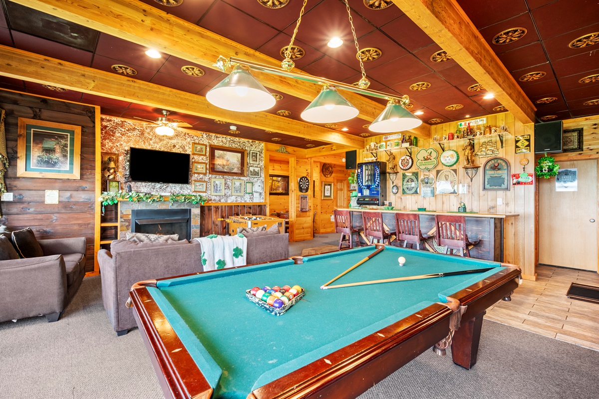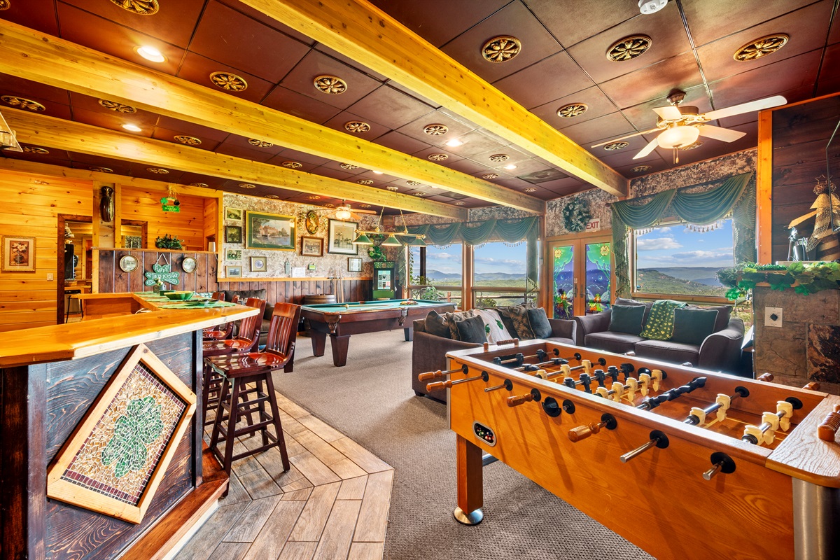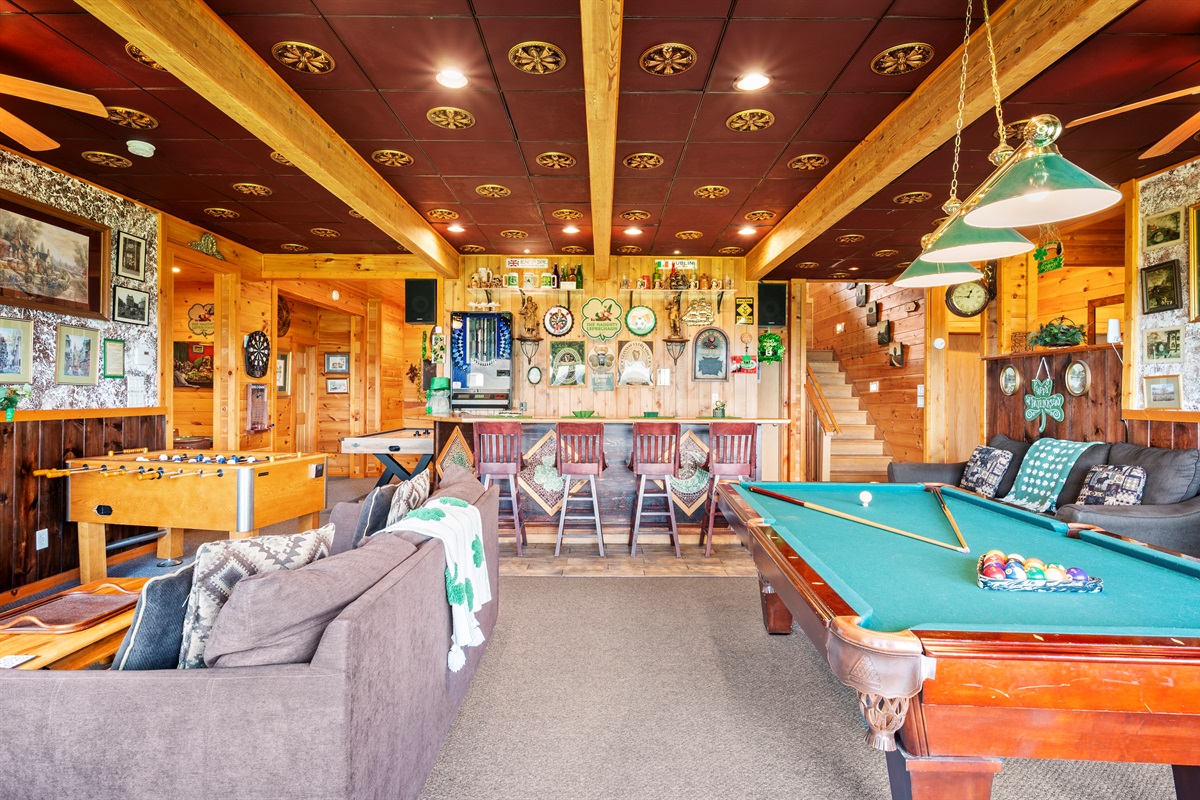 For the adults who are ready to let their hair down and act like kids, Celesta Vista has brought an Irish legacy to the Smoky Mountains – with the “Naughty Leprechaun” Irish Pub. It is here in the “Naughty Leprechaun” where every day of the year you can be whisked away to a taste of Ireland (Don’t forget to wear something green, or else a leprechaun just might pinch you!!!!). The pub area is tastefully decorated and have you saying “Sláinte” (Cheers!). The “Naughty Leprechaun” also includes a large recreation area suitable for all ages equipped with billiards, air hockey, foosball, darts, poker table, 60” flat screen tv, X-Box, Jukebox, and video arcade.
