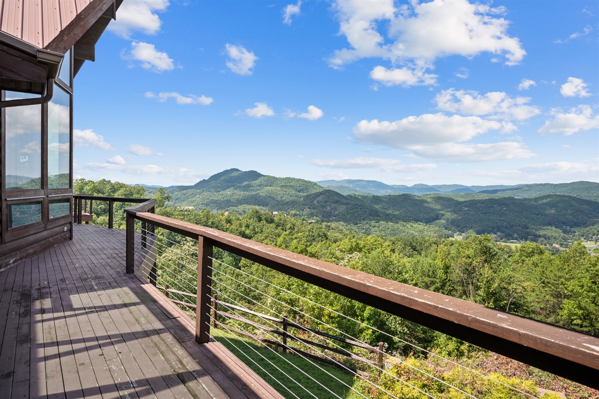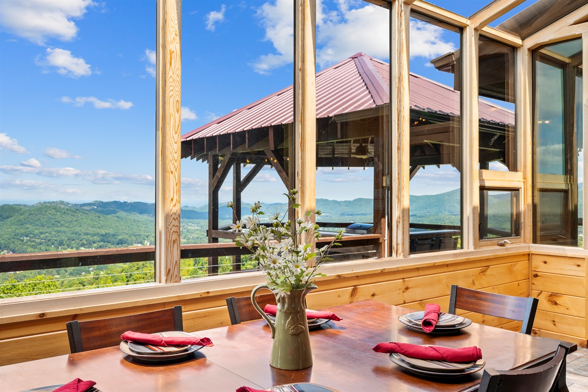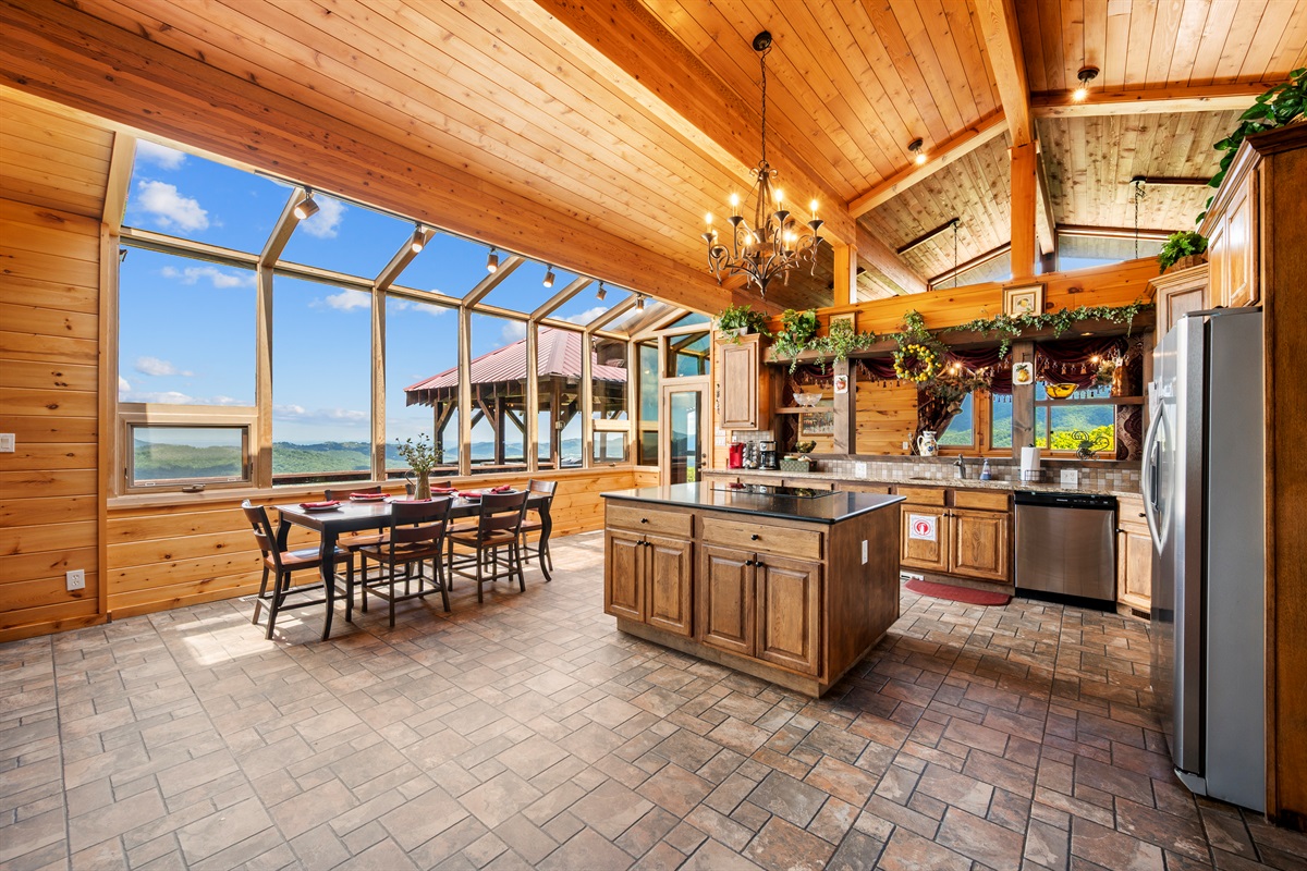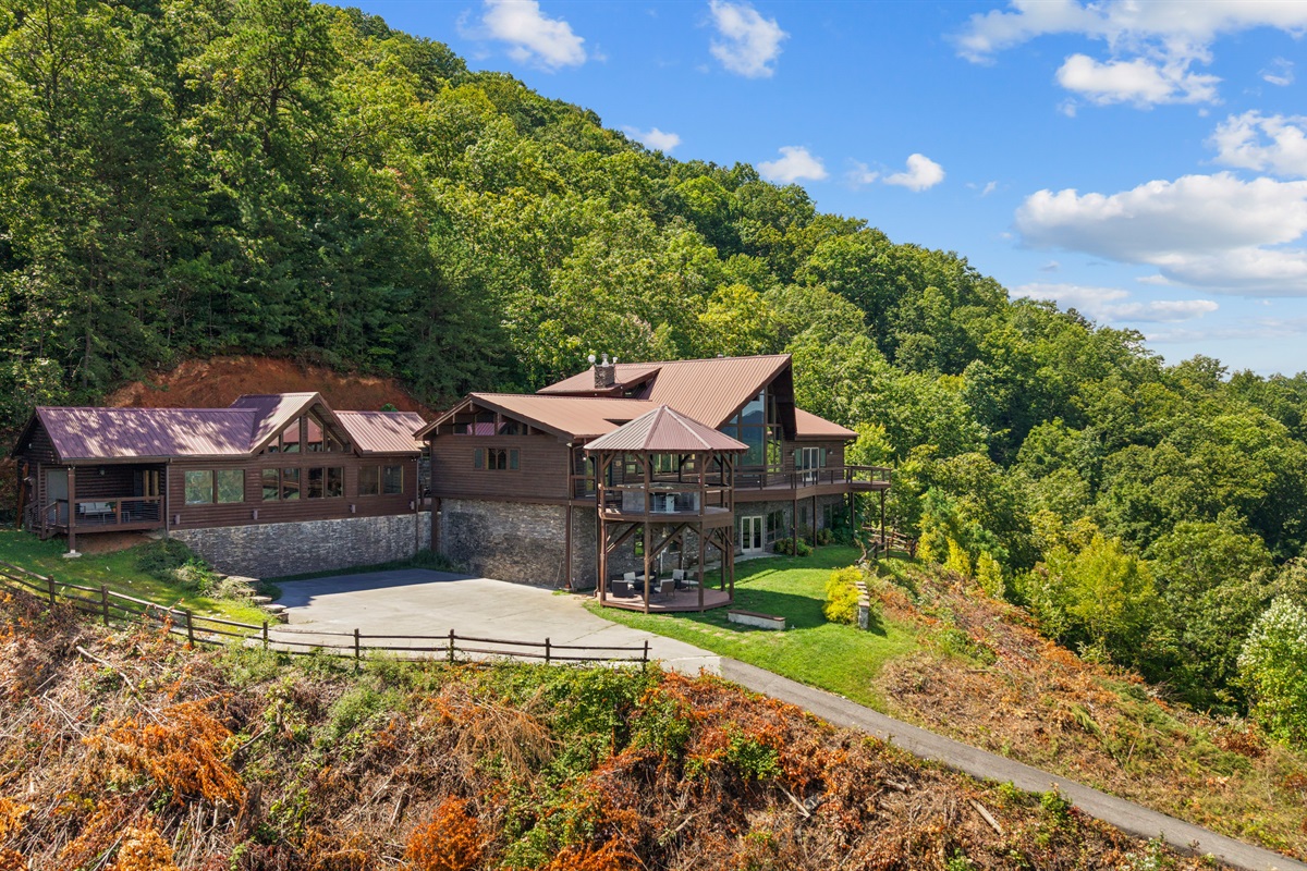 OUTDOOR AREA -The front of Celesta Vista Lodge features a large two-story gazebo who's entrance is connected to the main level deck adjacent to the dining room. The upper level of the gazebo has a fully fitted outdoor kitchen featuring a gas grill, sink and refrigerator. The kitchen has an elevated bar area that will comfortably seat 8 or more. With the valley and mountains stretched below the area, it promises to be the ultimate grilling experience and visiting area in the Smokies!