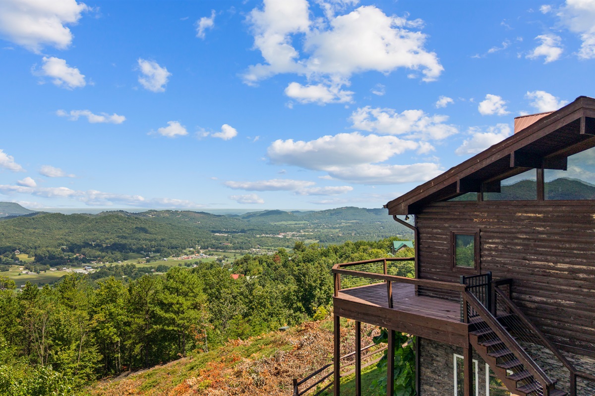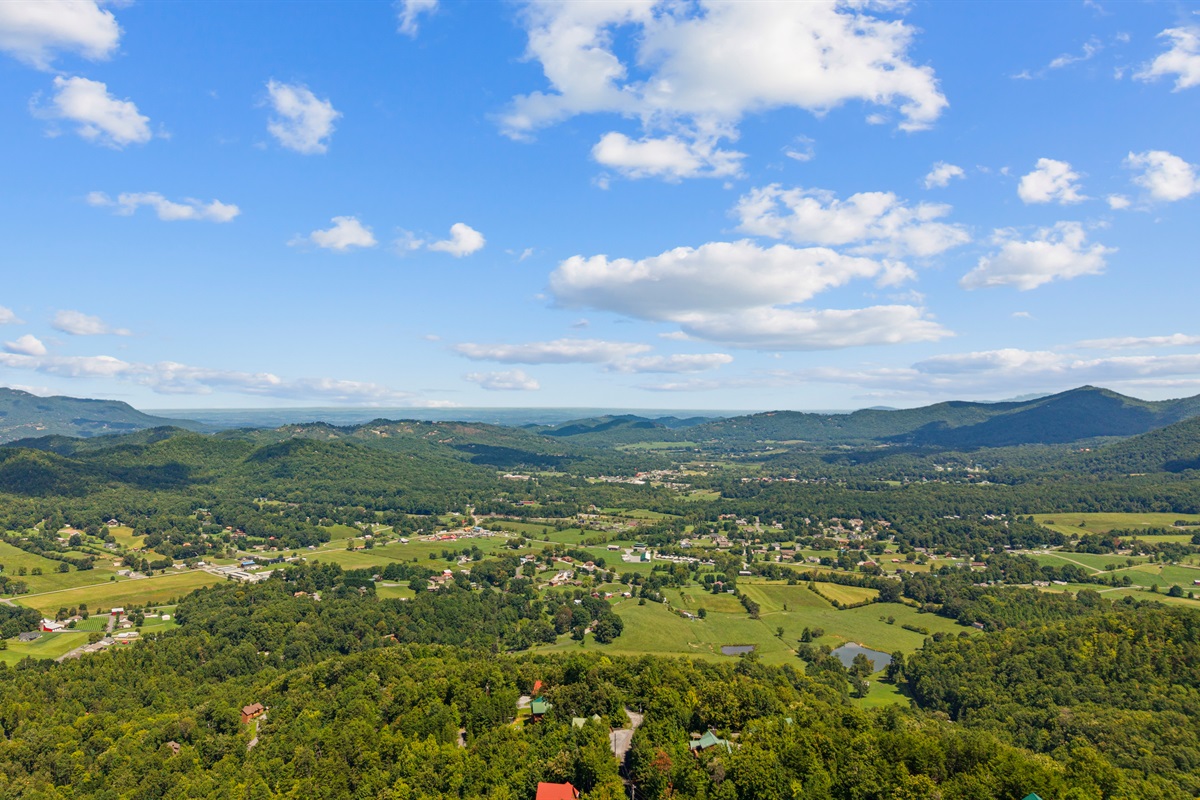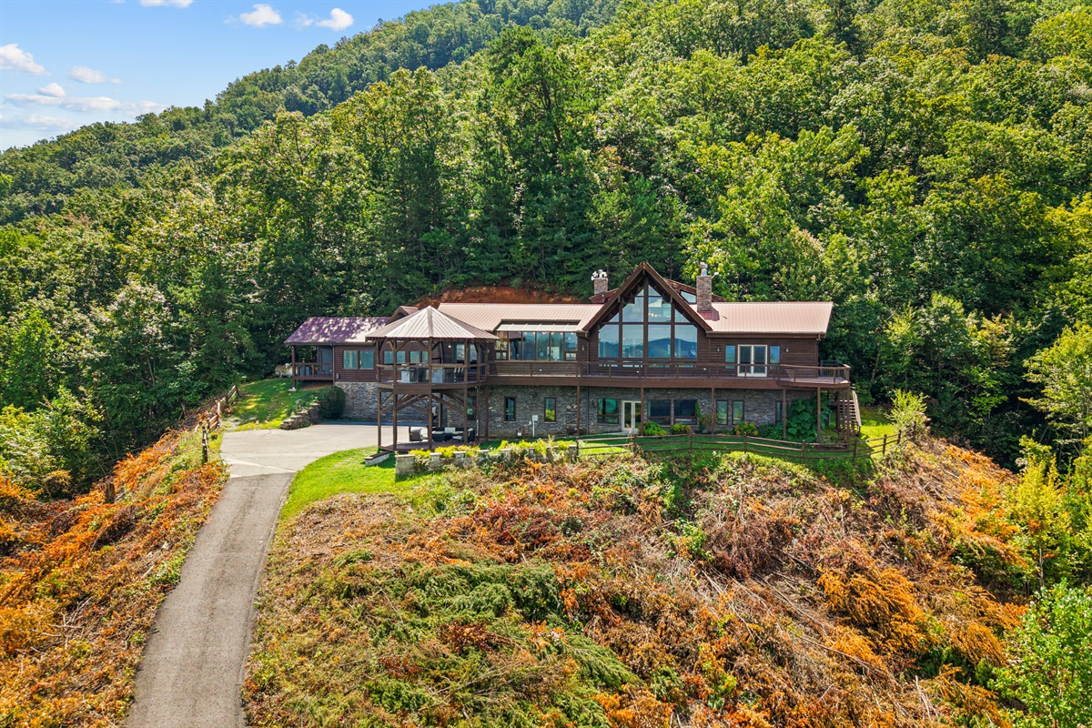 The Celestial Lodge has 7 bedrooms, 7 full baths, and 2 half baths. It comfortably sleeps up to 14 people and offers breathtaking views directly down into Wear's Valley below, with views back at the foothills, Bluff Mountain, and Hatcher Mountain. The property has been designed to afford your entire family or group a truly unique, and unforgettable getaway with unparalleled amenities, and is ideal for family reunions, weddings, or any large group gathering.
