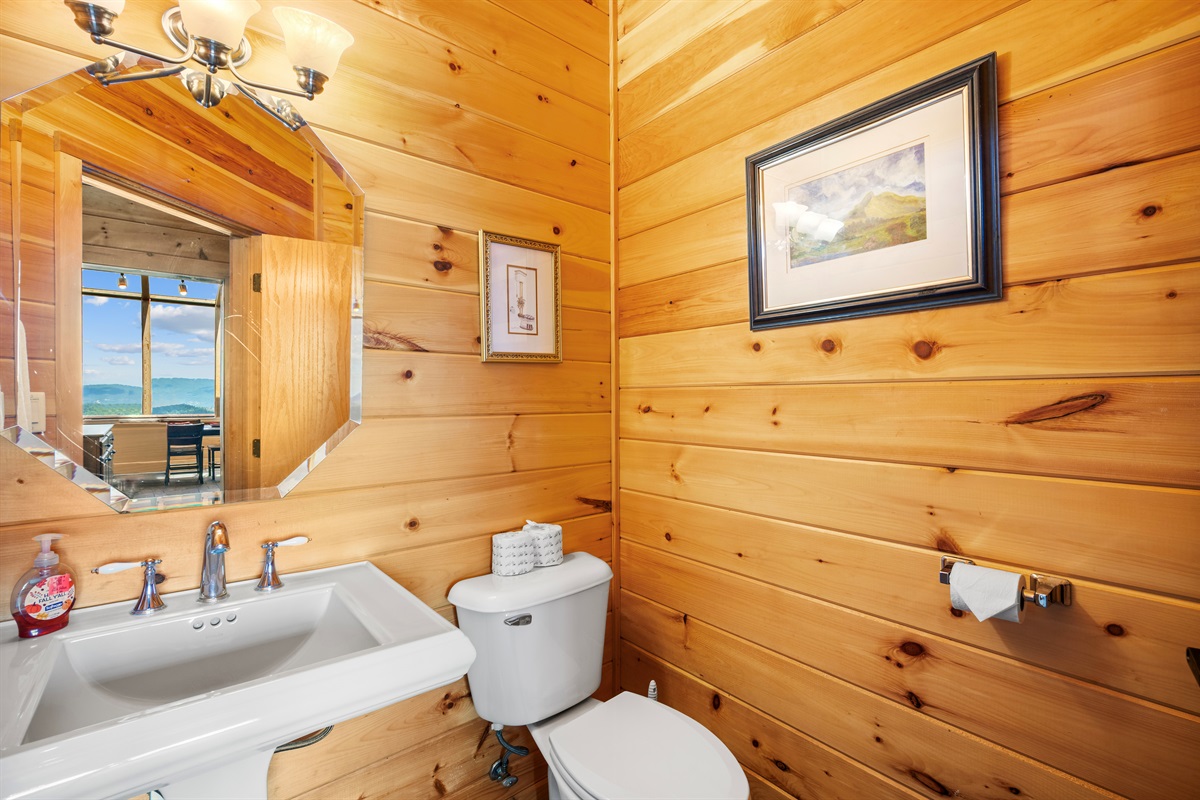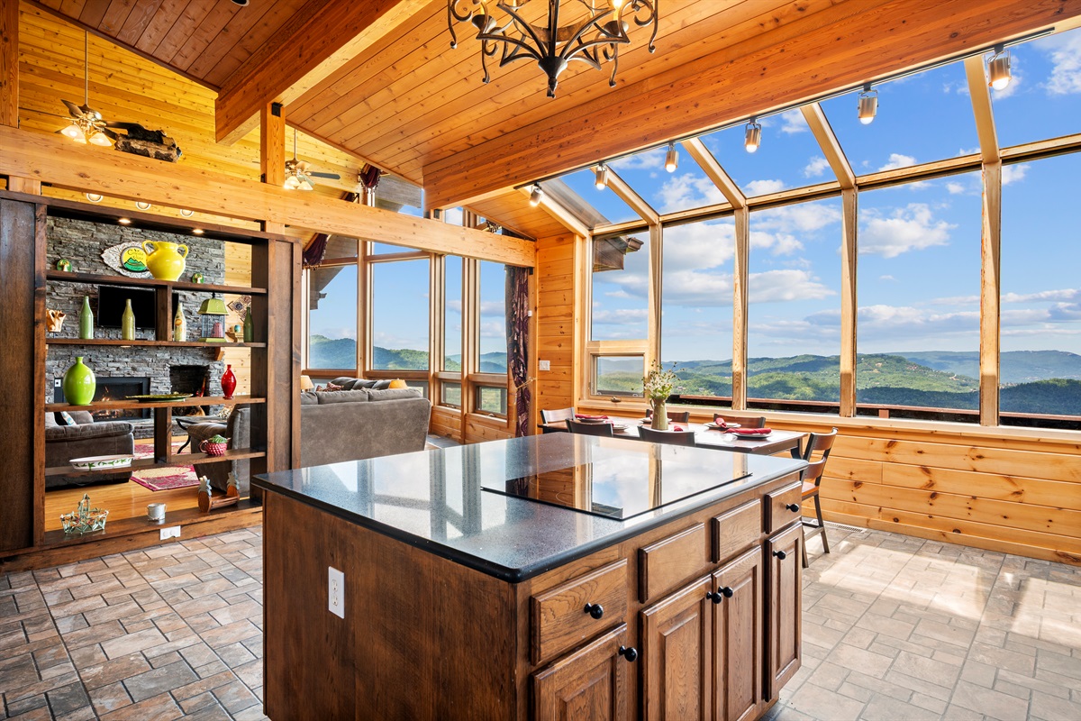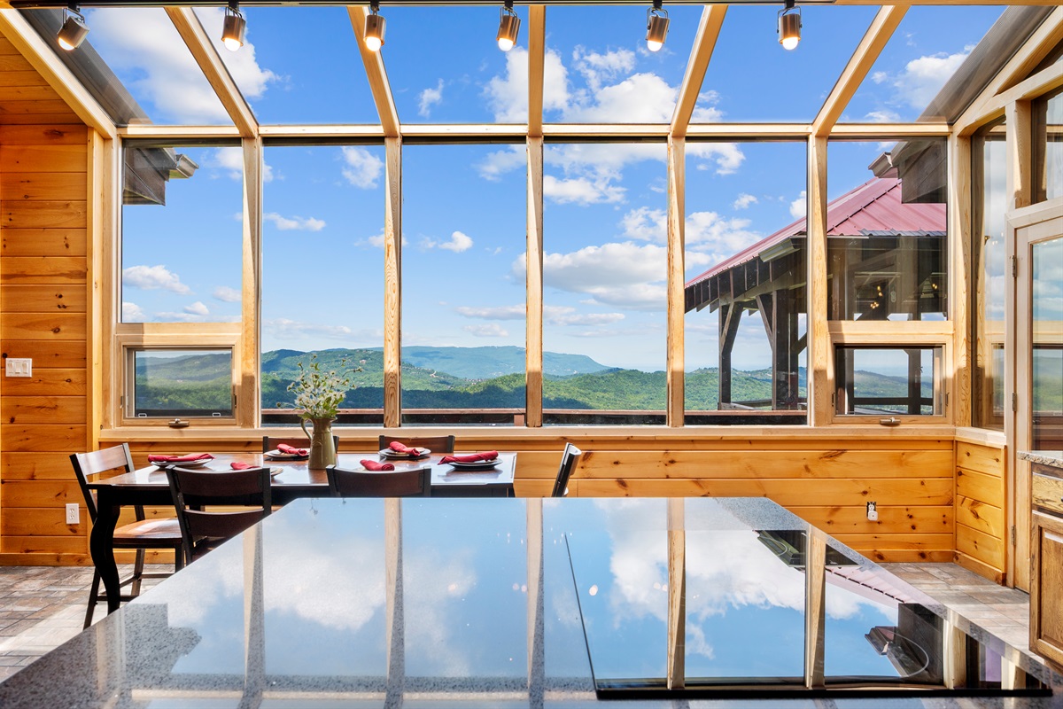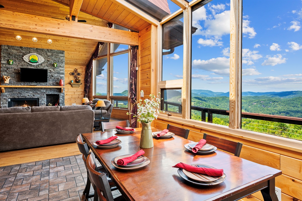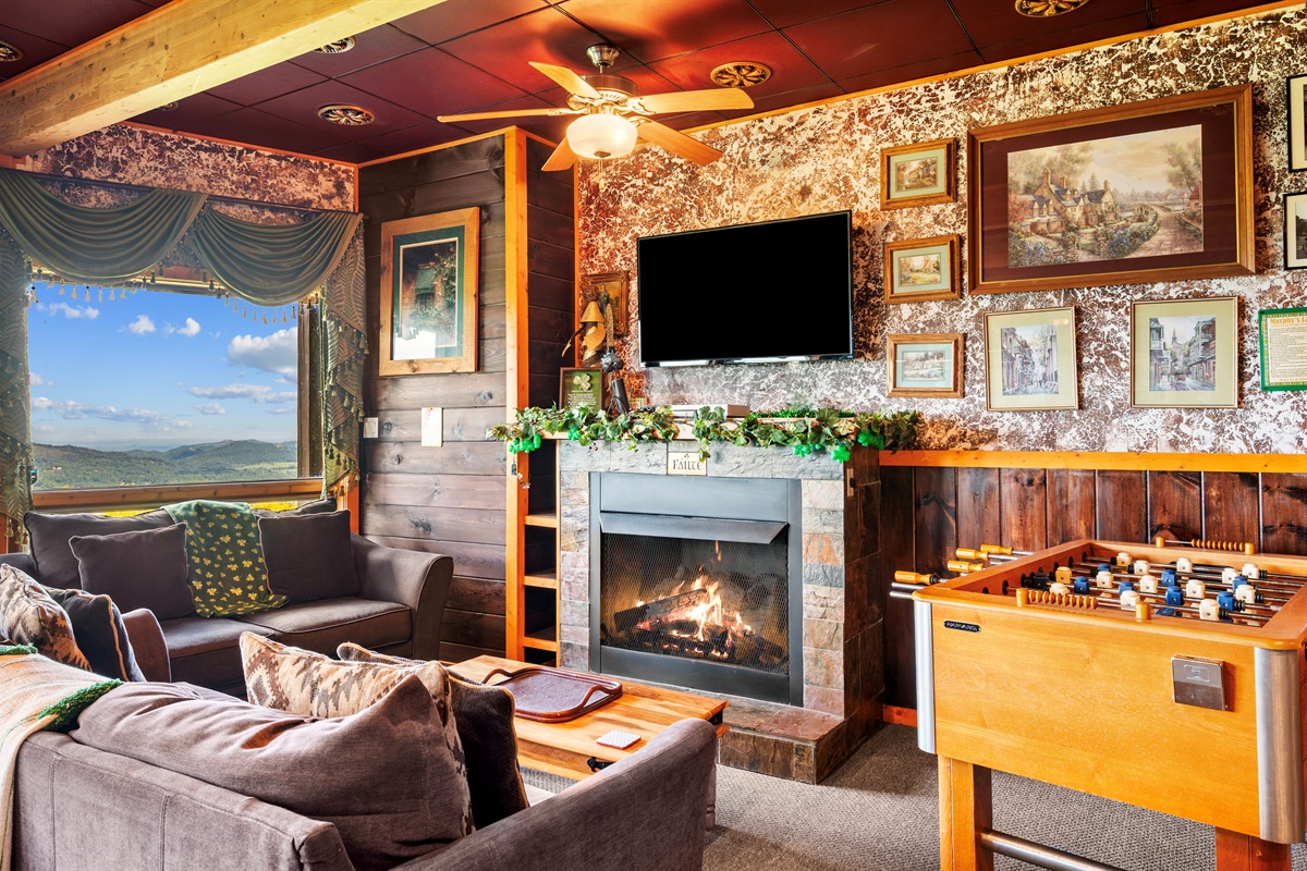 MAIN FLOOR - On the main level of Celesta Vista Lodge is a breath-taking great room, which encapsulates the literal meaning of Celesta Vista. The wall of windows overlooks Wear's Valley and the magnificence of the view can`t be captured in the pictures you are able to view on the website. The main living area features a gas log fireplace and an expansive sitting area with a large 60" flat screen television.