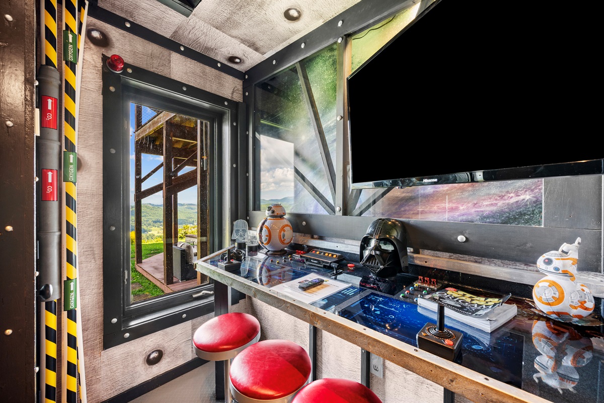 The Jedi Academy” offers young Padawans a chance to venture into a spaceship-based training academy for future Jedi warriors, while the ship hurtles through the outer rim galaxies. Within the futuristic, industrial interior, the spaceship’s cockpit and control panels are located, from which one can peer into the deep abyss of space. we got two sets of bunk beds in the spaceship. The first set of bunk beds are designed for Padawans( younger kids) and they are shorter than other sets. We have another set designed for young Jedi to rest and be ready for Master Yoda's special training during sleep!