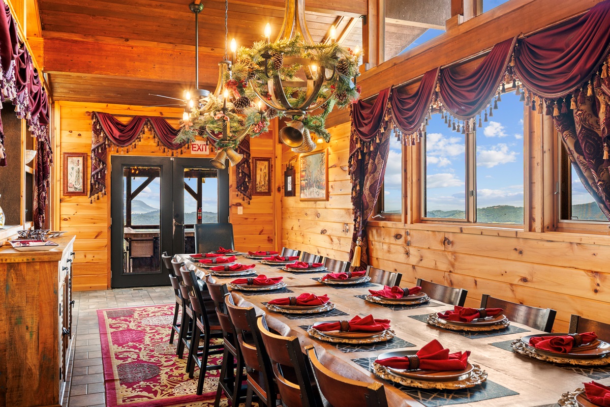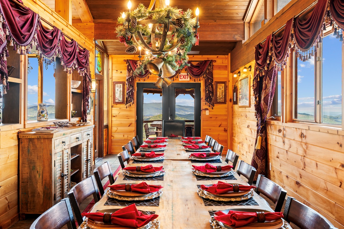 The name "Celesta Vista" literally means when translated “heavenly view”. True to its name, the 7000 sqft Celesta Vista Lodge is located more than 1000 feet above Wears Valley overlooking the valley and mountains below. The back of the property to the Smoky Mountain National Park. This private, custom-built, luxurious cabin will truly be the highlight of any visit to the Smoky Mountain National Park, Pigeon Forge, and Gatlinburg. No other cabin will come close to the amenities and view that this cabin offers.