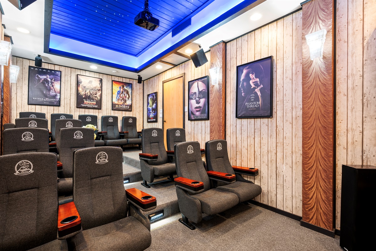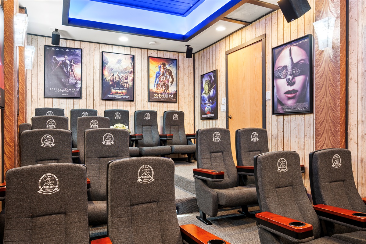 Ready for a movie? Celesta Vista has its own 15 seats, VIP movie theater with surround sound.