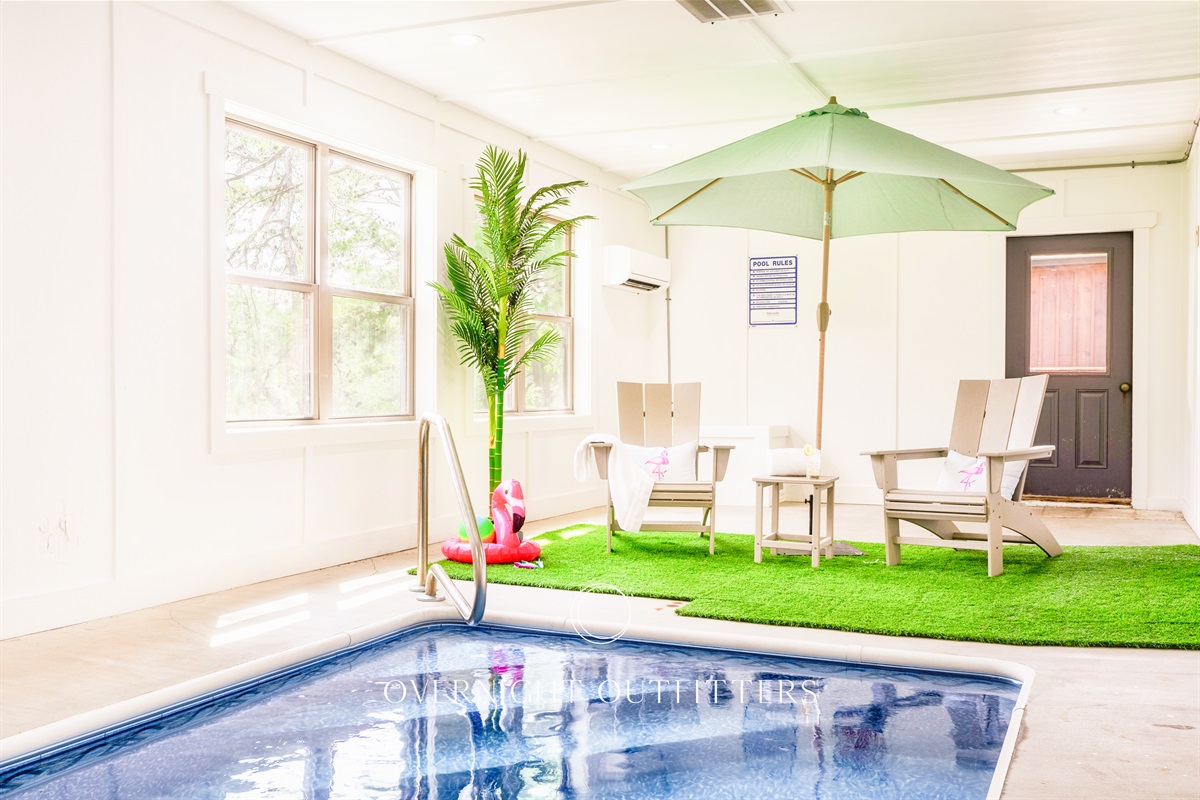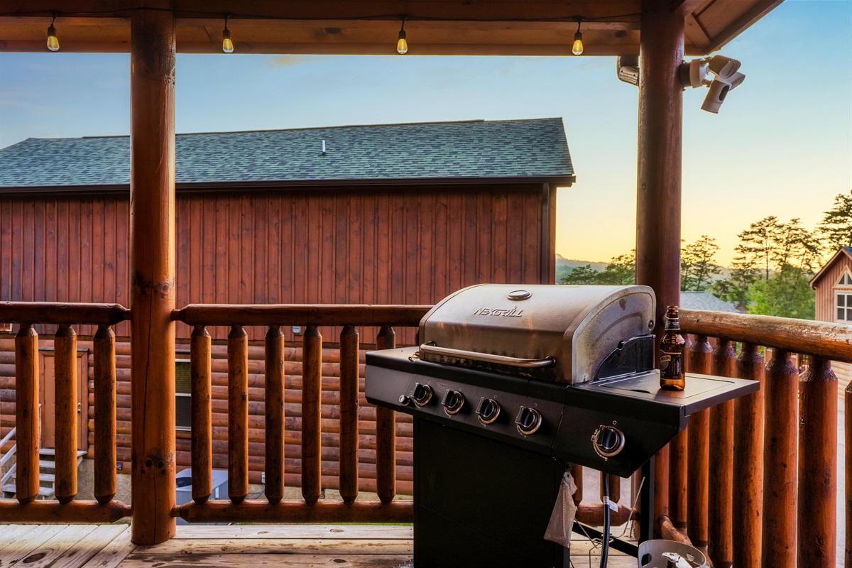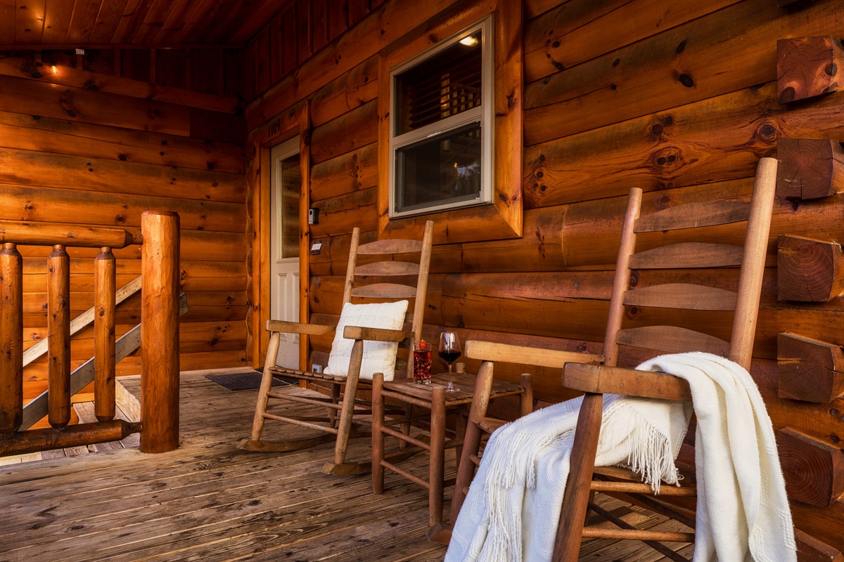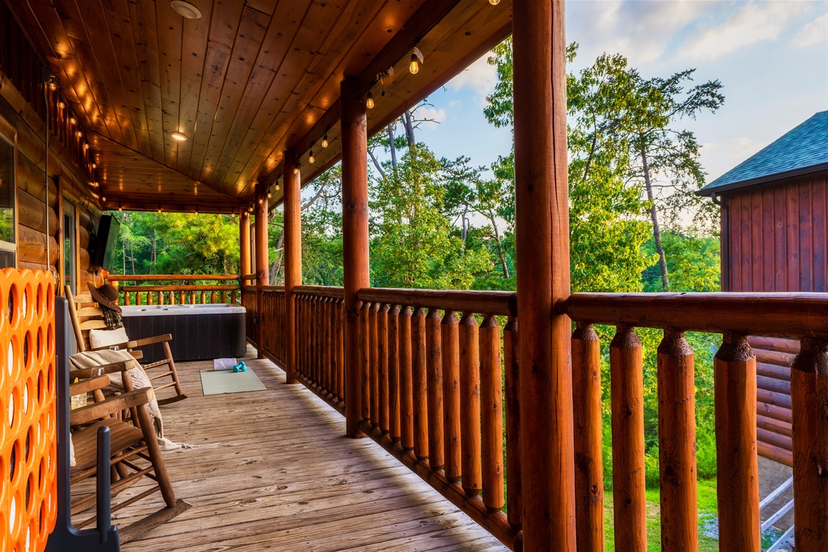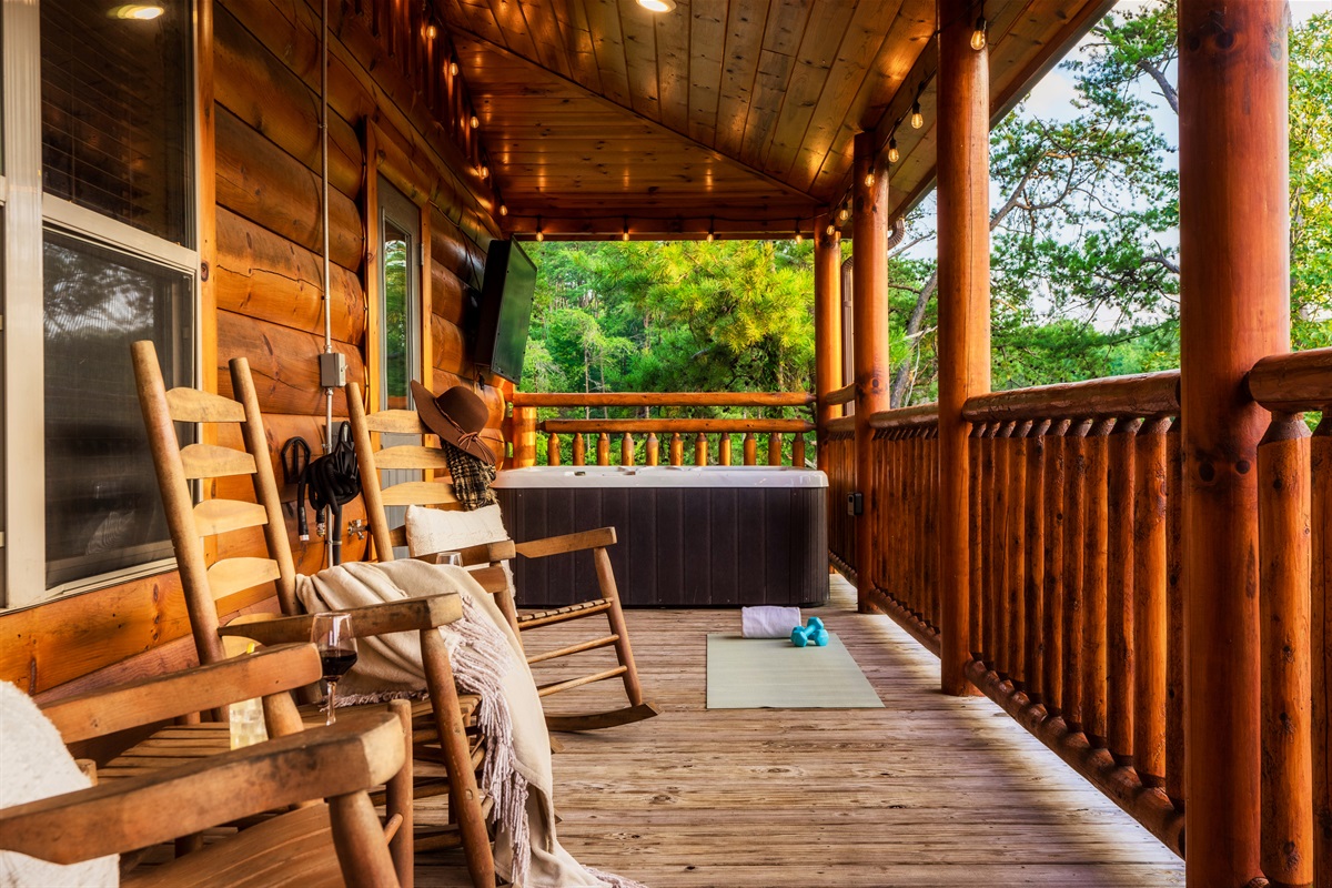 What really makes Flapjack stand out is the experience factor. The private indoor pool gives families a built-in activity no matter the weather, and the outdoor deck keeps the fun going with a hot tub, TV by the hot tub, cornhole, string lights, a new gas grill, and plenty of rocking chairs for relaxing in true cabin style.