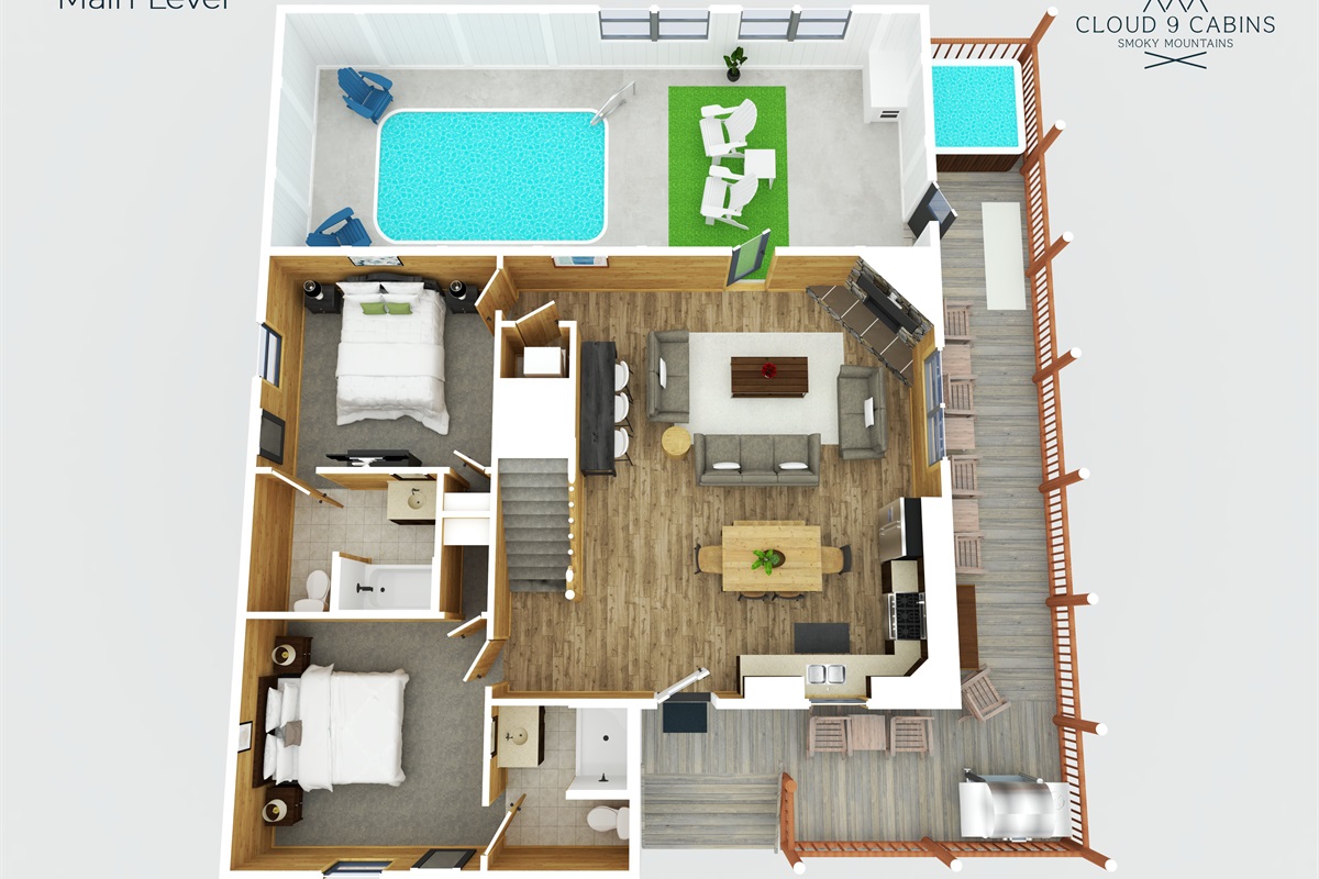 Located off the Sharp Hollow Road area in Bear Crossing, Flatjack Cabin offers a convenient route into Pigeon Forge. By way of Henderson Chapel Road, you can reach the Parkway near attractions like Rowdy Bear, the Titanic Museum, and other popular spots without feeling stuck in the middle of the chaos. The gated neighborhood also adds extra value with shared amenities that are great for families, including an indoor community pool and mini golf.
