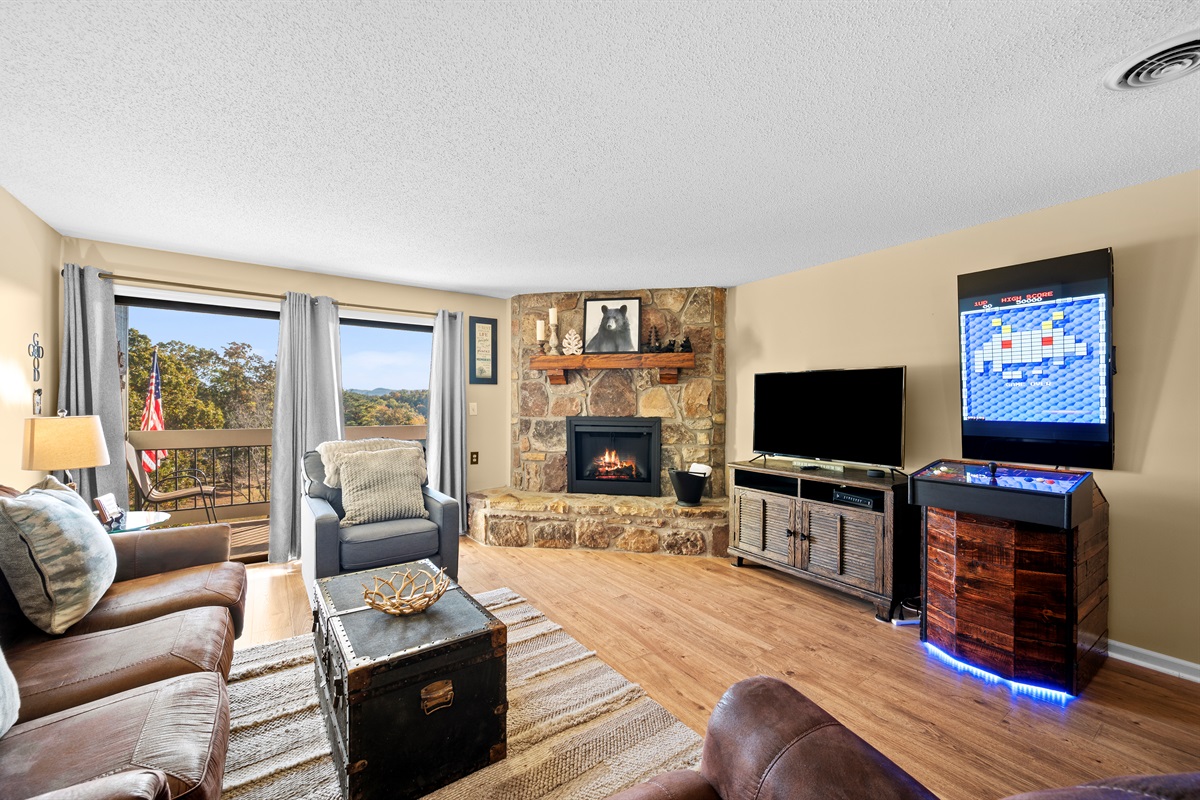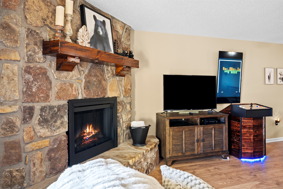Welcome to Peak of Faith. This two-bedroom condo off of Wears Valley Rd is ready to welcome you on your next trip to Pigeon Forge. You are less than 2 miles to the Pigeon Forge Parkway. Drive to town or catch a trolley right at the main road near the condo! Each bedroom has a king-sized bed and a smart TV. Log in to your streaming services to watch all your favorite shows and movies. There is a queen-sized sleeper sofa in the living room! Hang out in the living room while playing the multicade gaming system with a 50" monitor screen with 60 game choices, and enjoying the electric fireplace. This condo is perfect for couples, friends, or small families. The kitchen is fully equipped to make meals in the condo, making this a budget-friendly option! There is also a seasonal pool open from Memorial Day to Labor Day. During Dollywood's Summer Celebration, you can catch a view of the nightly fireworks show!