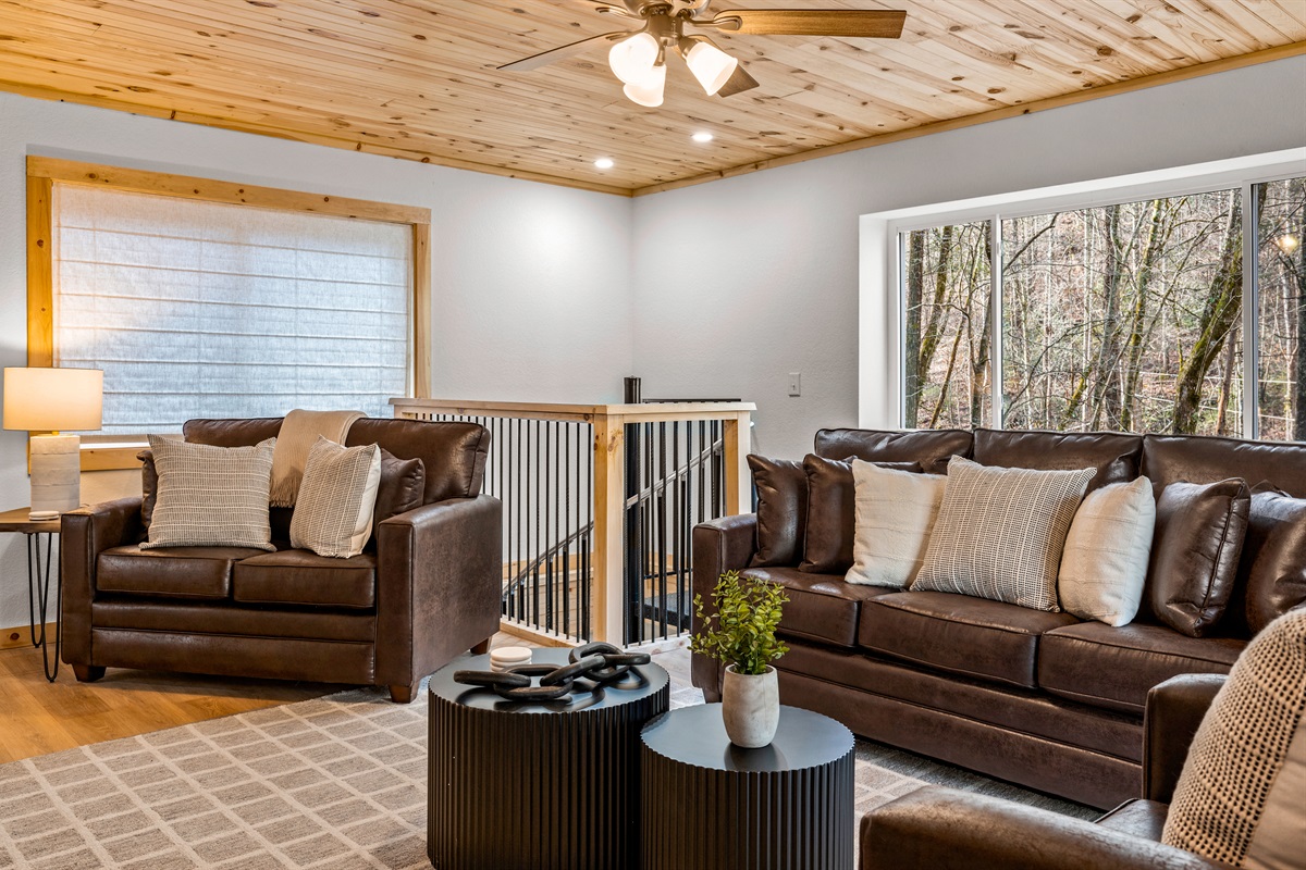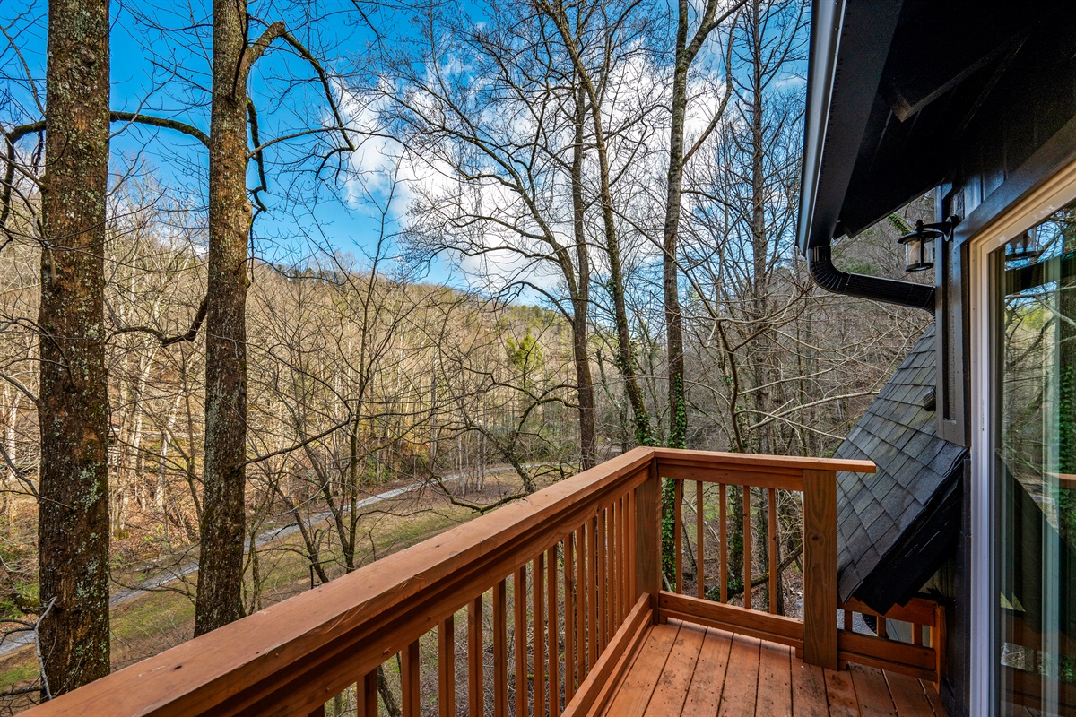 Up the stairs from the dining area you'll find 2 bedroom suites, both featuring a full-bathroom with walk-in shower. Each bedroom has its own private balcony, so you can enjoy that morning cup of coffee while taking in the fresh air of the Smoky Mountains.