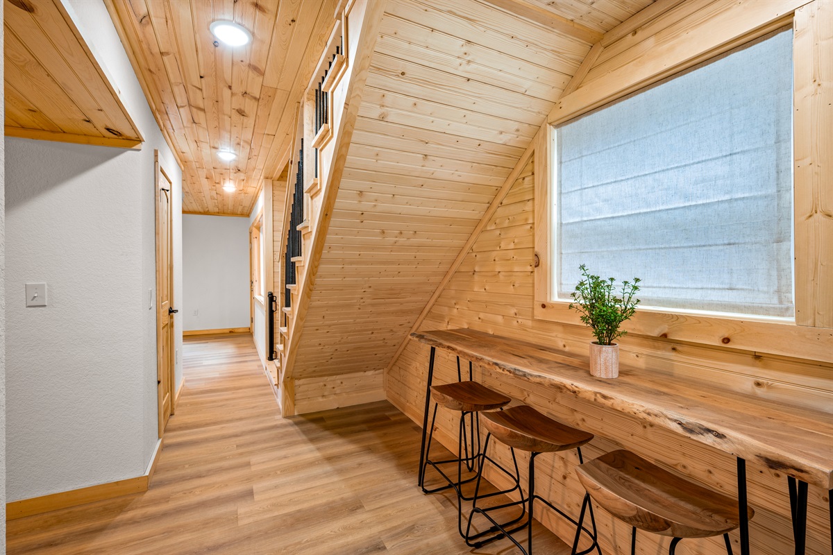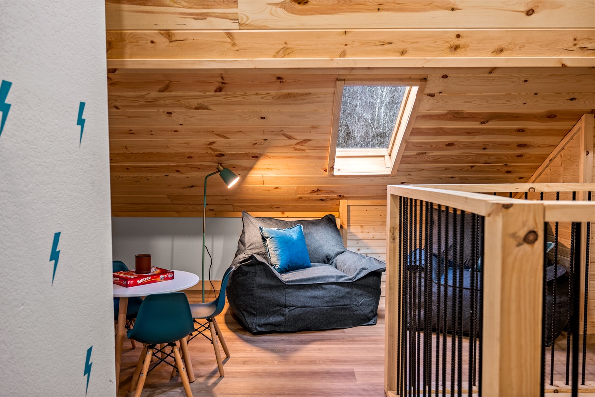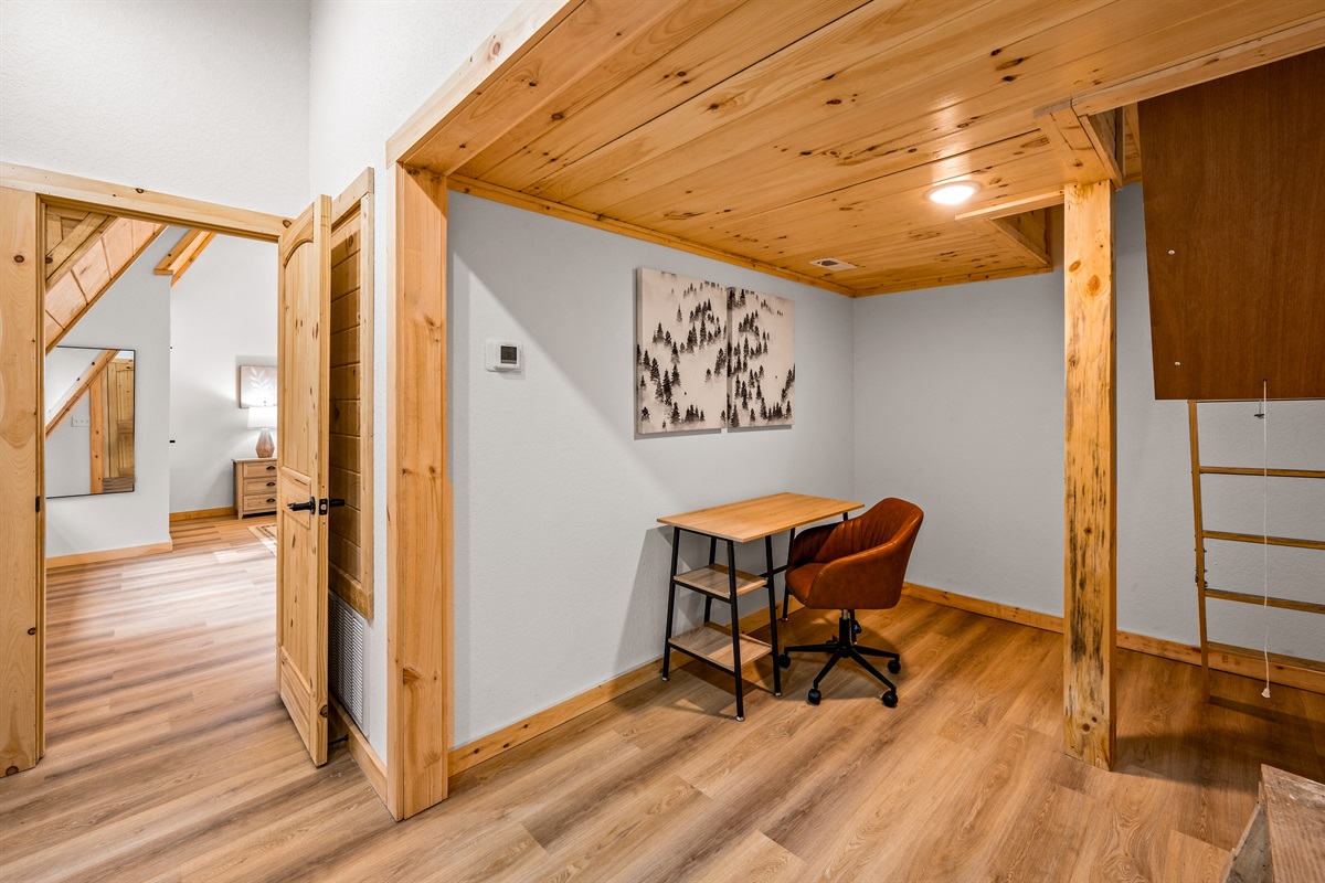 Between the King and Bunk rooms is a peaceful reading nook, with comfortable seating to get lost in a good book before bed. There is also a dedicated work-space in case you need to catch up on work during your stay.