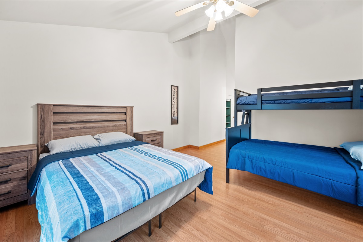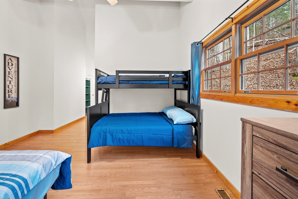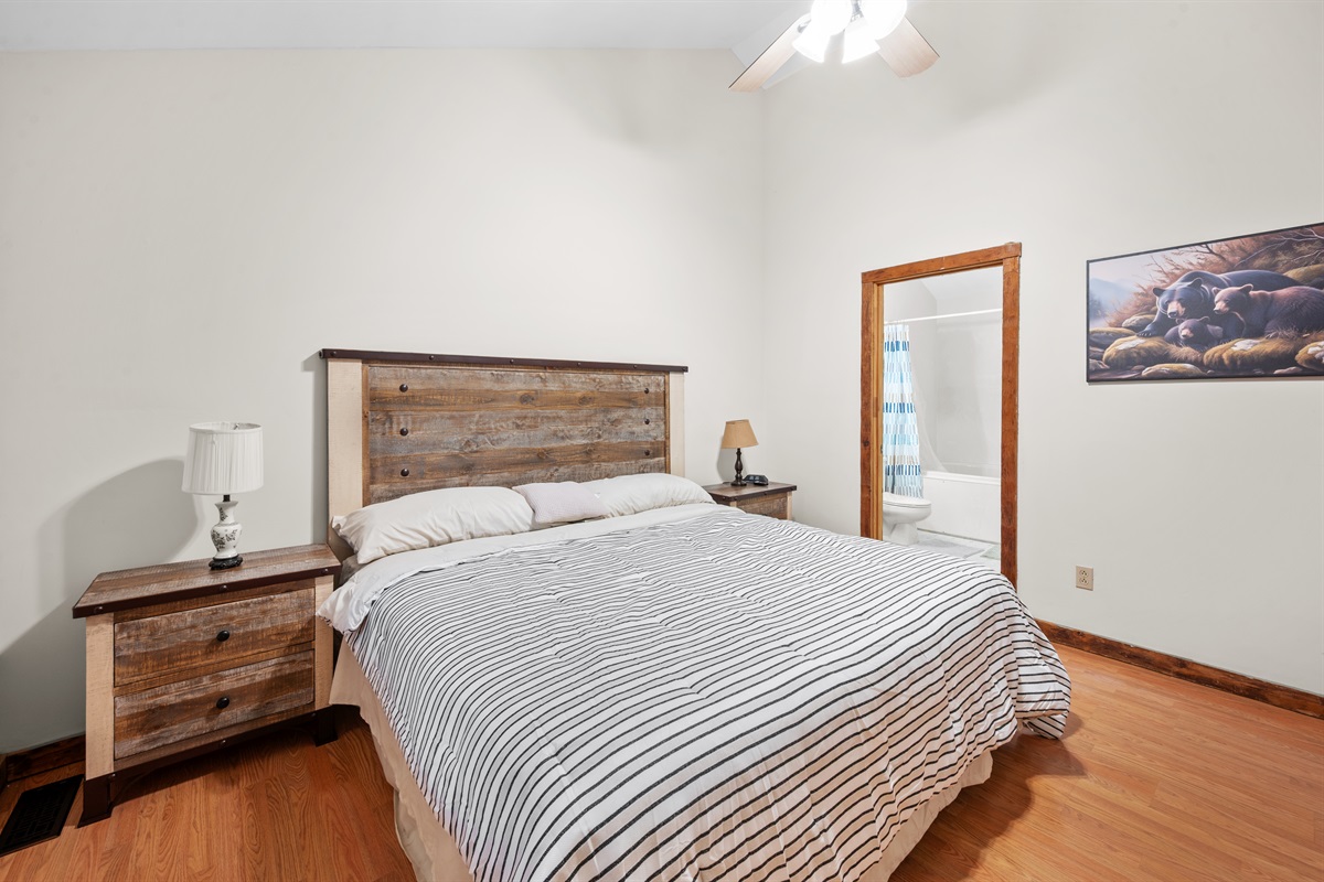 The cabin’s bedrooms offer comfortable sleeping arrangements for families or small groups looking to explore the Smoky Mountains while enjoying the peaceful atmosphere that makes Townsend so special.
